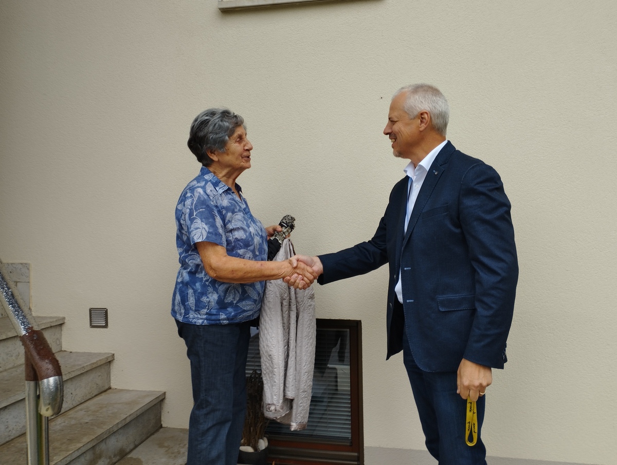 Gospa se je druženja z županom zelo razveselila. Hitro sta se zapletla v prijeten pogovor, v katerem je beseda nanesla tudi na pomen brezplačnih prevozov za starejše. Ti jim omogočajo dostop do zdravniških storitev, odhod po opravkih ali preprosto več samostojnosti v vsakdanjem življenju. Druženje je minilo v sproščenem vzdušju.