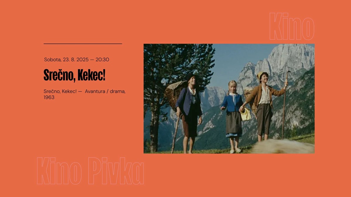 Kino Pivka vas prijazno vabi, da skupaj z nami doživite čarobno poletno filmsko noč na prostem! Dobimo se v soboto, 23. avgusta 2025 ob 20.30 pri Gasilskem domu Zagorje. Tam si bomo na platnu pod zvezdnatim nebom ogledali digitalno restavrirano slovensko filmsko klasiko Srečno, Kekec!
