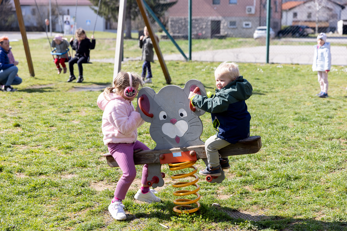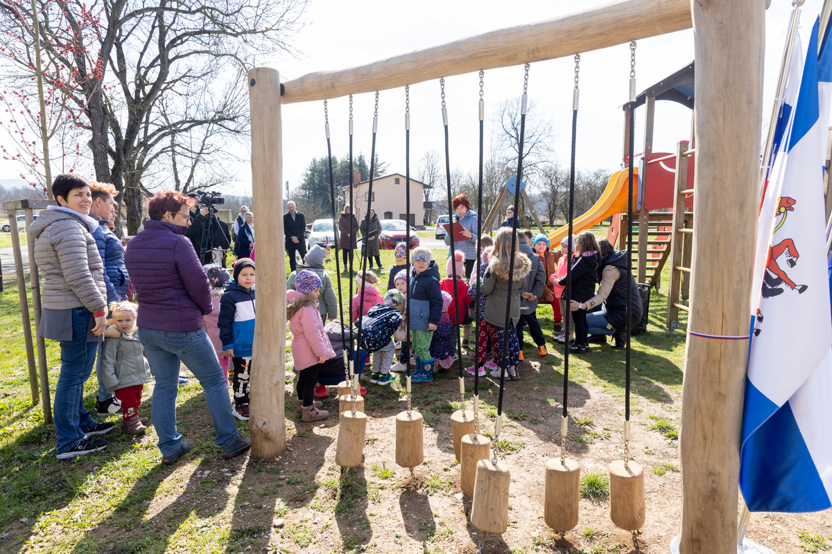 Igrišče so namenu predali ob pesmi otrok iz košanskega vrtca, zapeli so otroci iz skupine Ježki in Medvedki. Otvoritev je povezovala Naja Rutar. Odprtja so se udeležili tudi ravnateljica OŠ Košana dr. Vesna Rutar Grubič, predsednica Vaške skupnosti Dolnja Košana Alenka Urbančič, podžupanja Občine Pivka Majda Godina, direktorica Zavoda za turizem Pivka Jana Gržinič ter predstavnik LAS med Snežnikom in Nanosom Aleš Zidar. Na otvoritvi je zbrane pozdravila predsednica Vaške skupnosti Dolnja Košana Alenka Urbančič, s simboličnim prerezom traku so lepo dopoldne zaključili otroci in župan Robert Smrdelj.