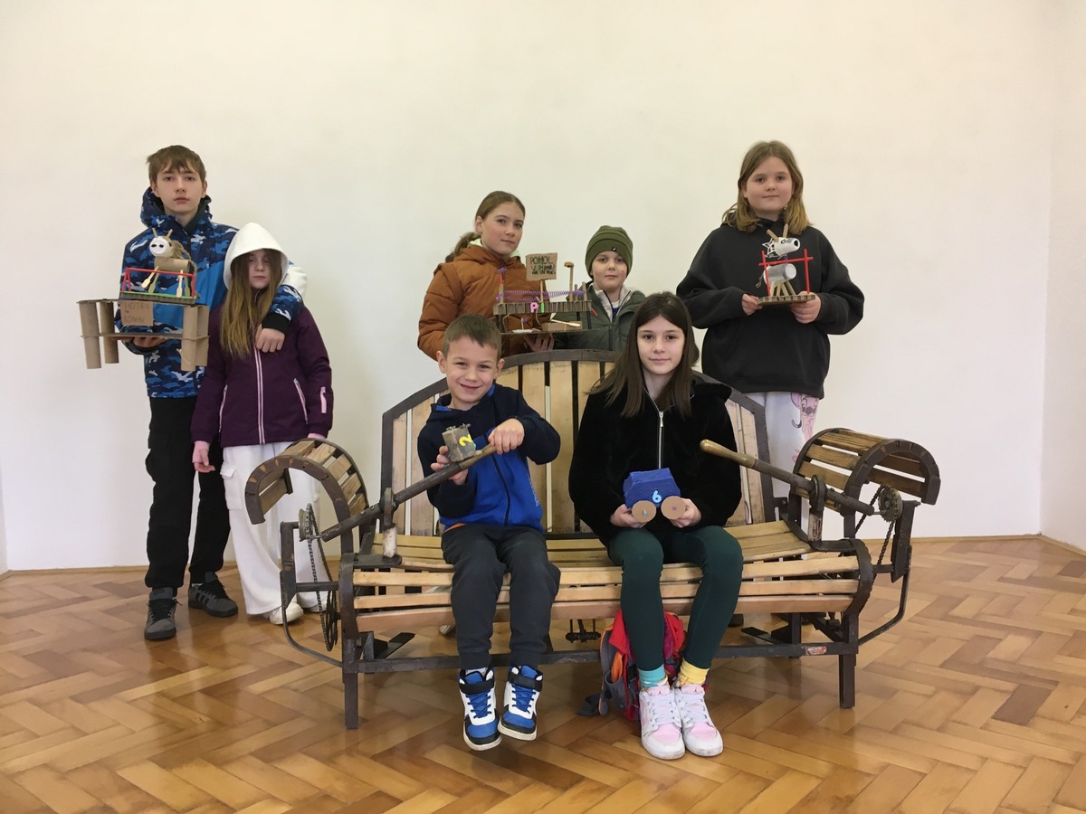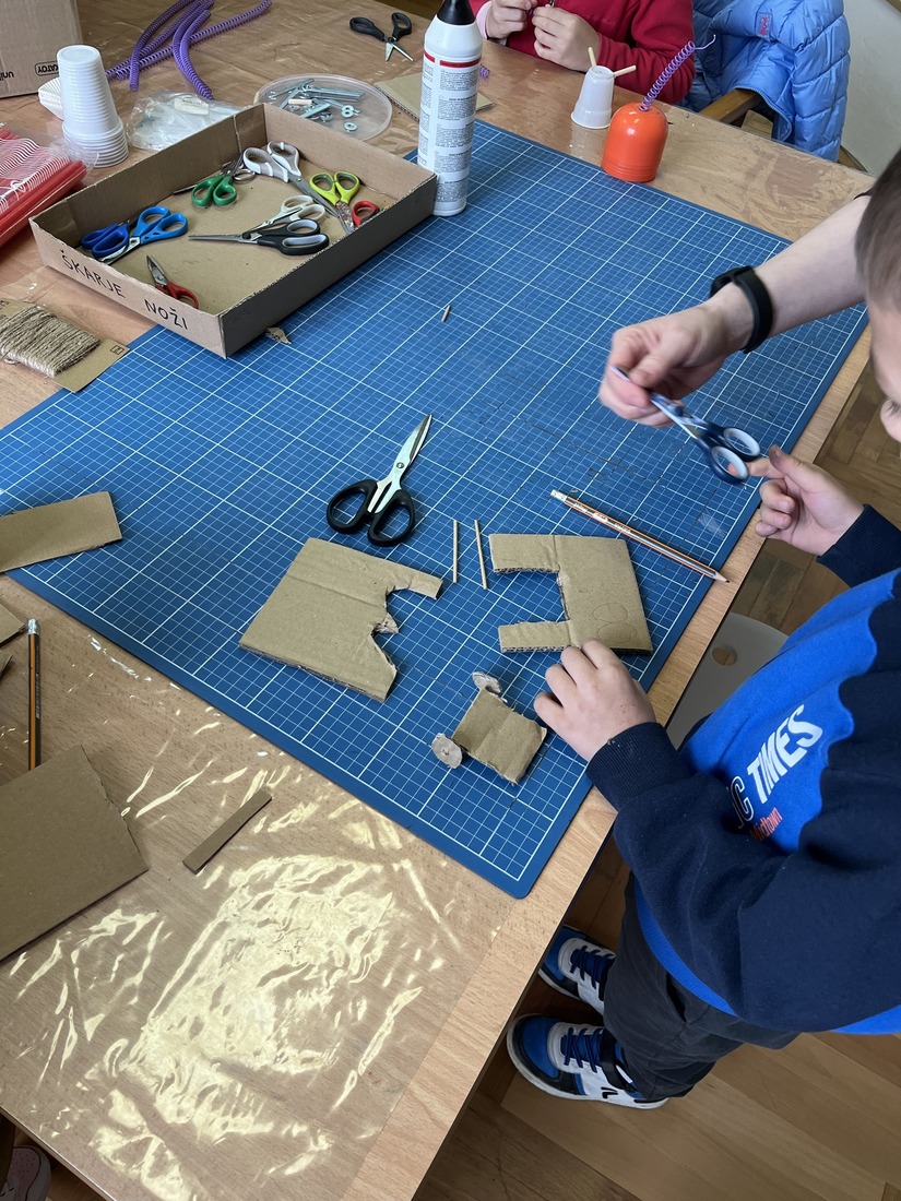 Navdihnjeni z ogledom so se nato preizkusili še v lastnem ustvarjanju. Iz različnih razpoložljivih materialov je vsak udeleženec oblikoval svojo dinamično figuro. Nastala je prava mala zbirka kimajočih oslov, nekaj domiselnih vozil in celo kompleksnejše makete. Ustvarjanje je potekalo v sproščenem in spodbudnem vzdušju, ki je otrokom omogočilo svobodno izražanje idej ter razvijanje domišljije in ročnih spretnosti.