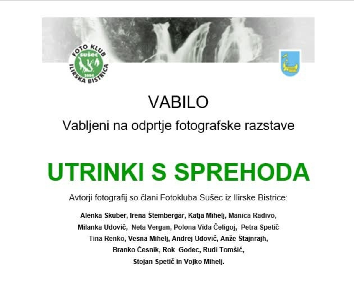 Vabljeni na odprtje fotografske razstave UTRINKI S SPREHODA