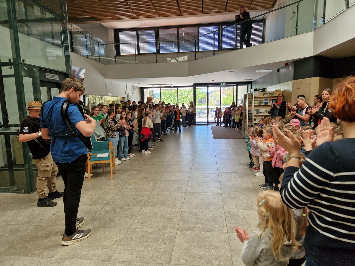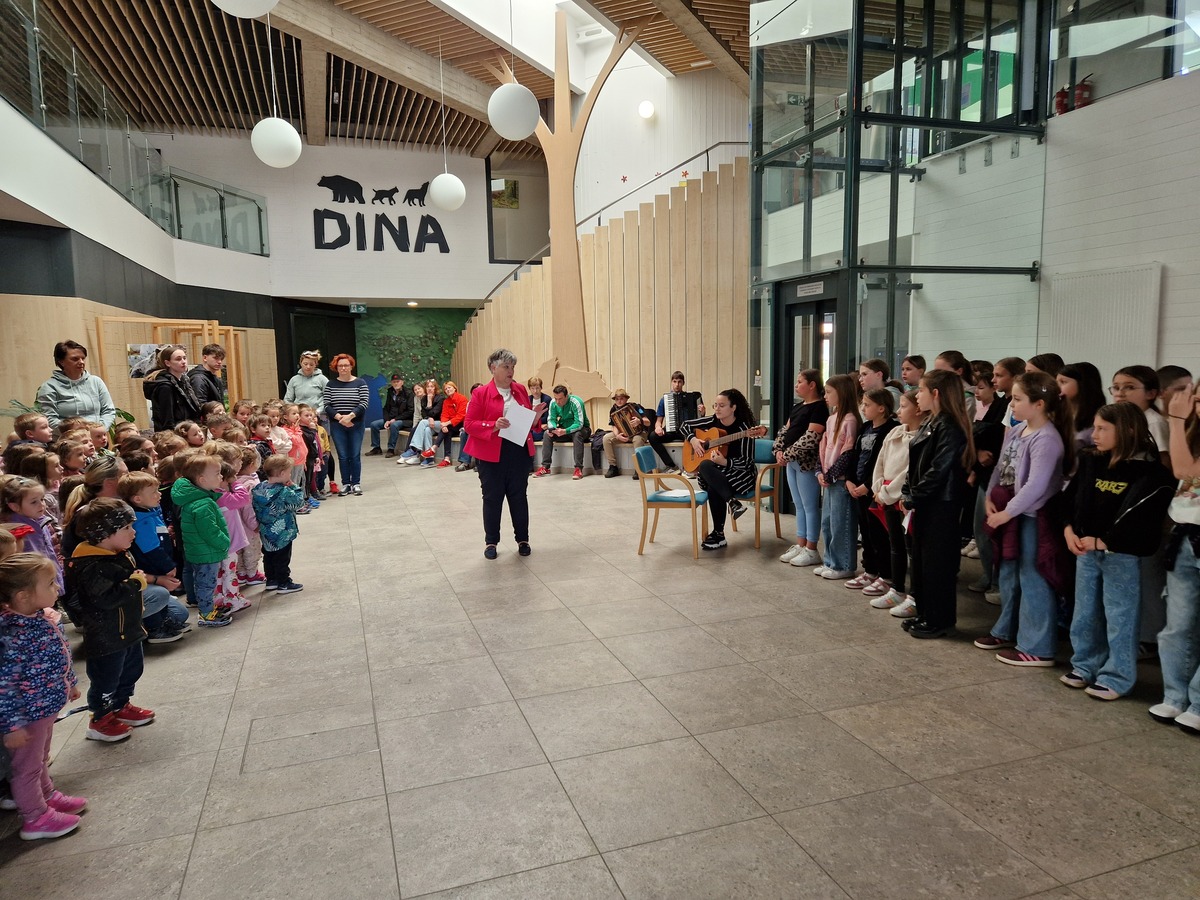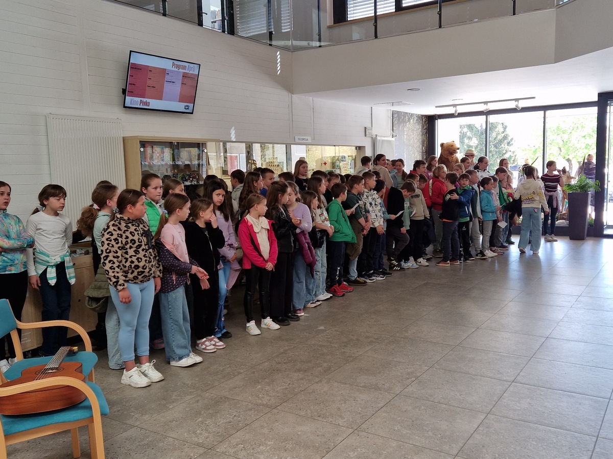 V Krpanovem domu so se danes, 23. aprila, dopoldne zbrali tisti, ki jih druži ljubezen do petja in slovenske pesmi. Med 10.30 in 11.30 so se otroci iz vrtca Pivka in učenci OŠ Pivka ob spremstvu harmonikarjev pridružili pobudi "Vseslovensko petje s srcem". Dogodek je povezovala Jana Gržinič.